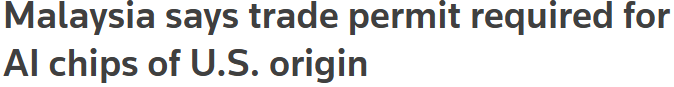 > 말레이시아 정부가 자국을 경유하는 미국산 고성능 AI 칩의 수출, 환적, 통과에 대해 허가제를 도입함