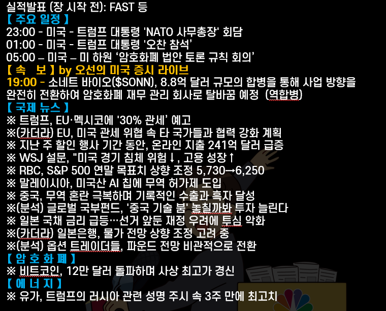 > * 프랑스 대통령과 독일 총리는 트럼프 대통령의 30% 관세 위협에 따른 심각한 경제적 타격을 우려하며, EU의 단합과 철저한 대비를 촉구하고 있음