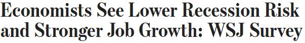 ## WSJ 설문, "미국 경기 침체 위험↓, 고용 성장↑([원문](https://www.wsj.com/economy/economists-see-lower-recession-risk-and-stronger-job-growth-wsj-survey-10d6e476))